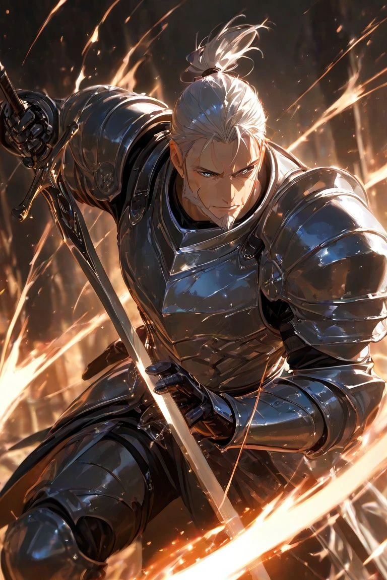 【名前】デューク・ノーマット 【年齢】46歳 【性別】男性 【性格】人情、威厳、正義感 【容姿】銀髪、黄色と青のオッドアイ 【所属】ドラーツ騎士団 【役職】ギルド長 【危険視】0(王国の管轄下のため) 【能力】心眼一閃︰敵の弱点を瞬時に見極めて目にも止まらぬ抜刀で相手を斬り裂く。