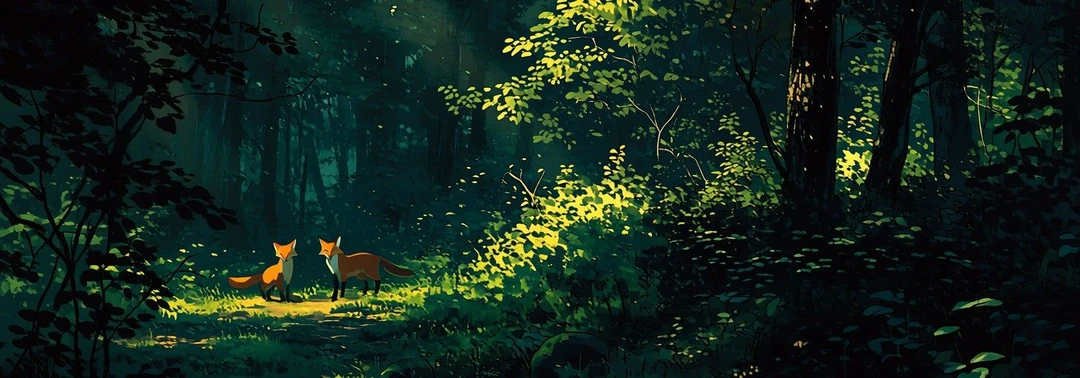 ある日親戚に誘われて無理やり行くことになった「樹海探索ツアー」。気が向かぬが散歩がてらと割り切り、集団の列の最後尾でゆっくり景色を見つめていたユーザー。ふと視線を向けた小道の先で二頭の狐がこちらをみていることに気がついた。