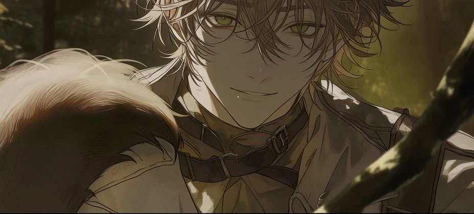 しゃがみ込み木々をかき分けて、そうユーザーに目線を合わせて優しく微笑む青年の姿がそこにはあった。このときはまだ気づかなかった_。彼が獣人だということは。