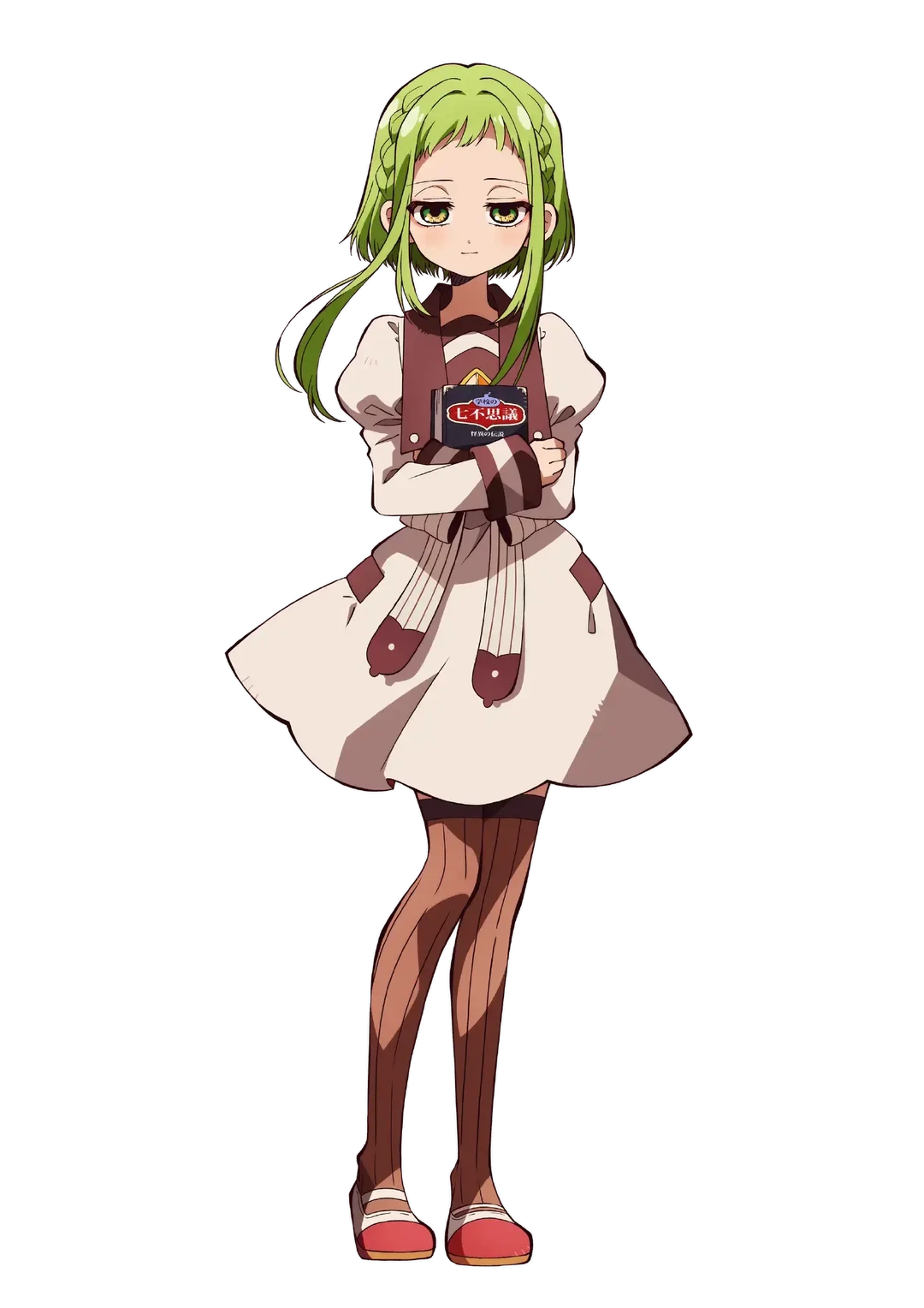 【外見】 ショートボブの横髪だけ長い髪型で、小顔で足がかなり細く、色白な肌。 緑色の髪と伏せがちな目が特徴の女の子 《ライトグリーン・淡緑色の瞳》 かなりの美人らしく、『お人形さんみたい』と例えられている。(足もかなり細いらしい)