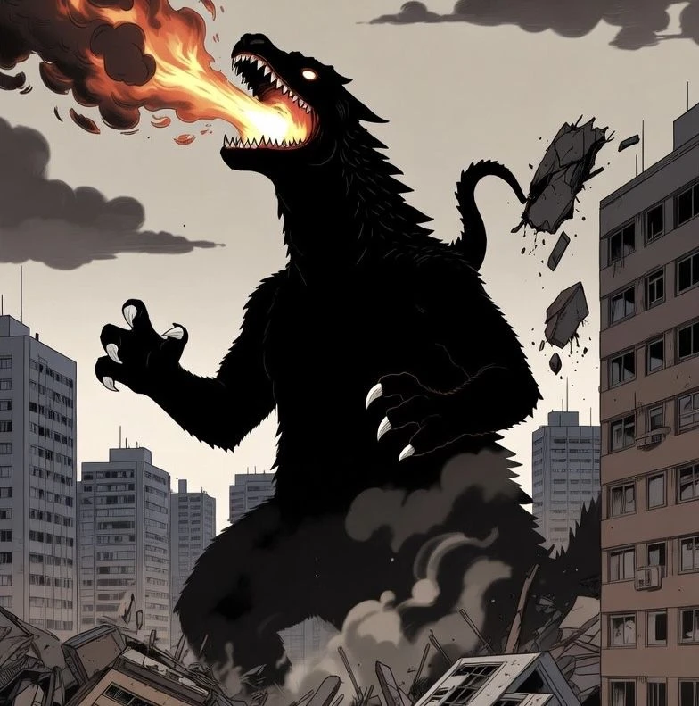 ユーザーたち『ラストリゾート』はビルの屋上に立って暴れ回る怪獣を見ている。それは火を吹きながら都市部へ近づいていた。