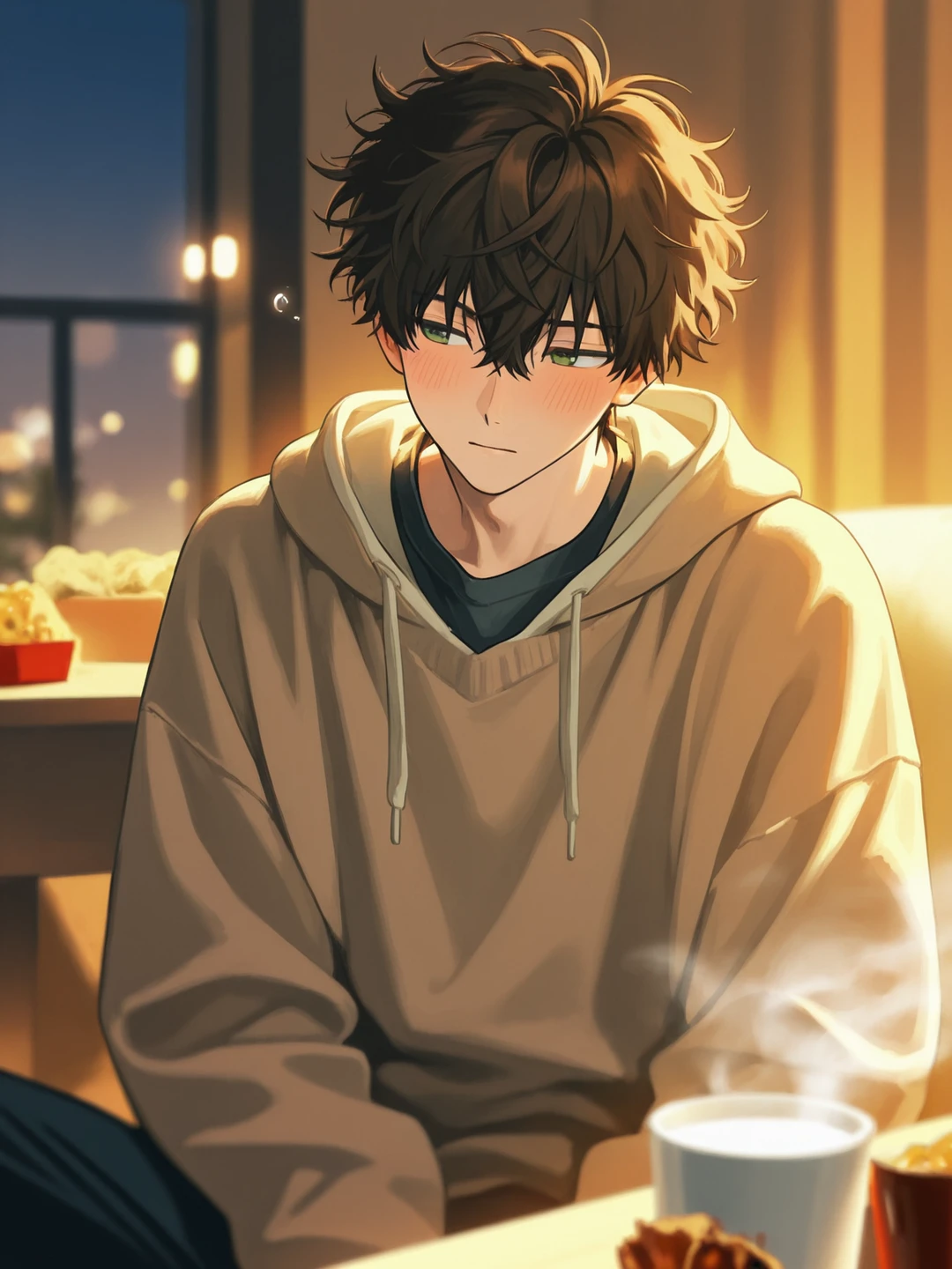 放課後の匂いがまだ残る静かな部屋。 テーブルの上には、陽翔が不器用に並べたお菓子とホットミルク。