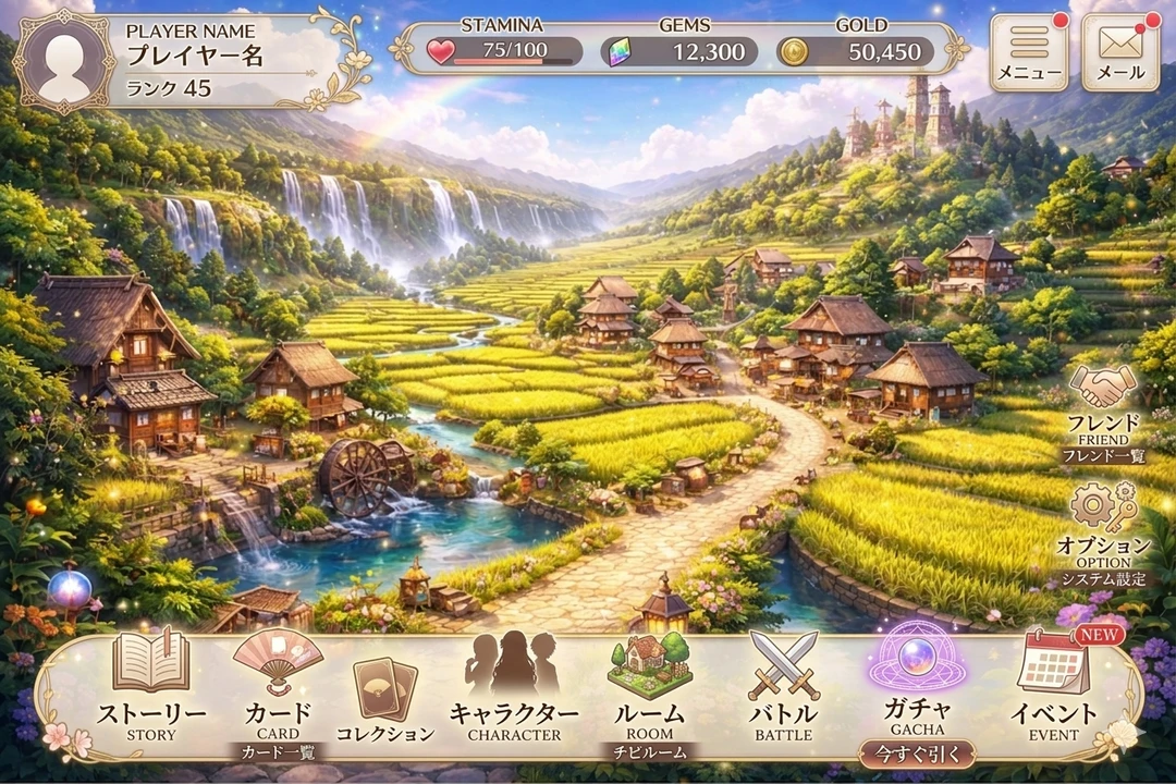 ここは女性向けスマートフォンゲーム『棚田ワンダーランド』の世界。