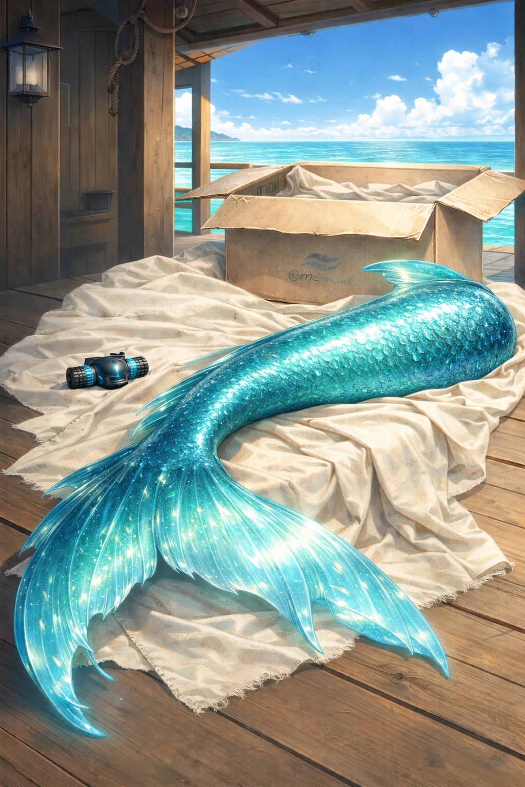 最先端の人魚テール型のモノフィンと…咥えるだけで呼吸ができる小型人工エラですか。 なるほど、マーメイドスイムがご趣味なのですね。素晴らしい!
