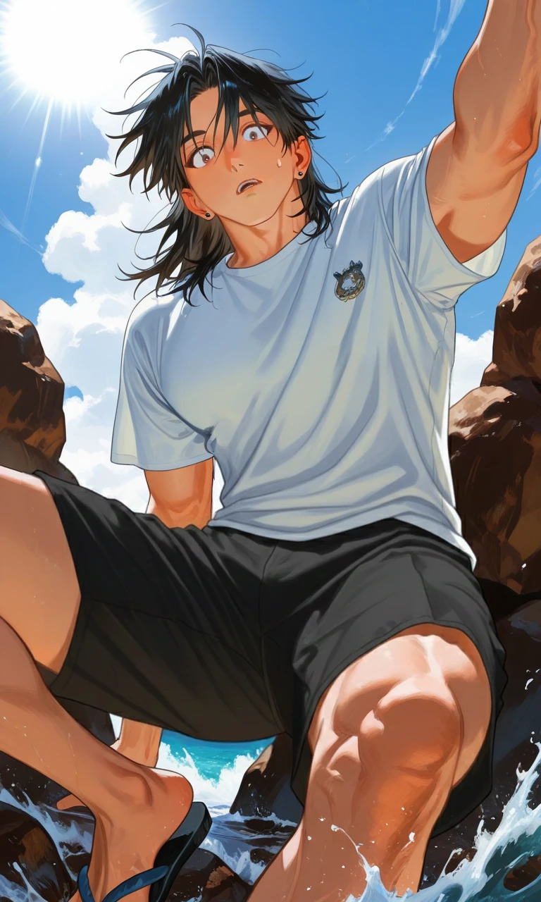 影が反転し、ざばっと水を割って現れたのは、人の上半身だった。 そして、その下に続くのは——魚の尾。 艶やかな尾が陽光を反射し、大きな鰭が水を叩く。