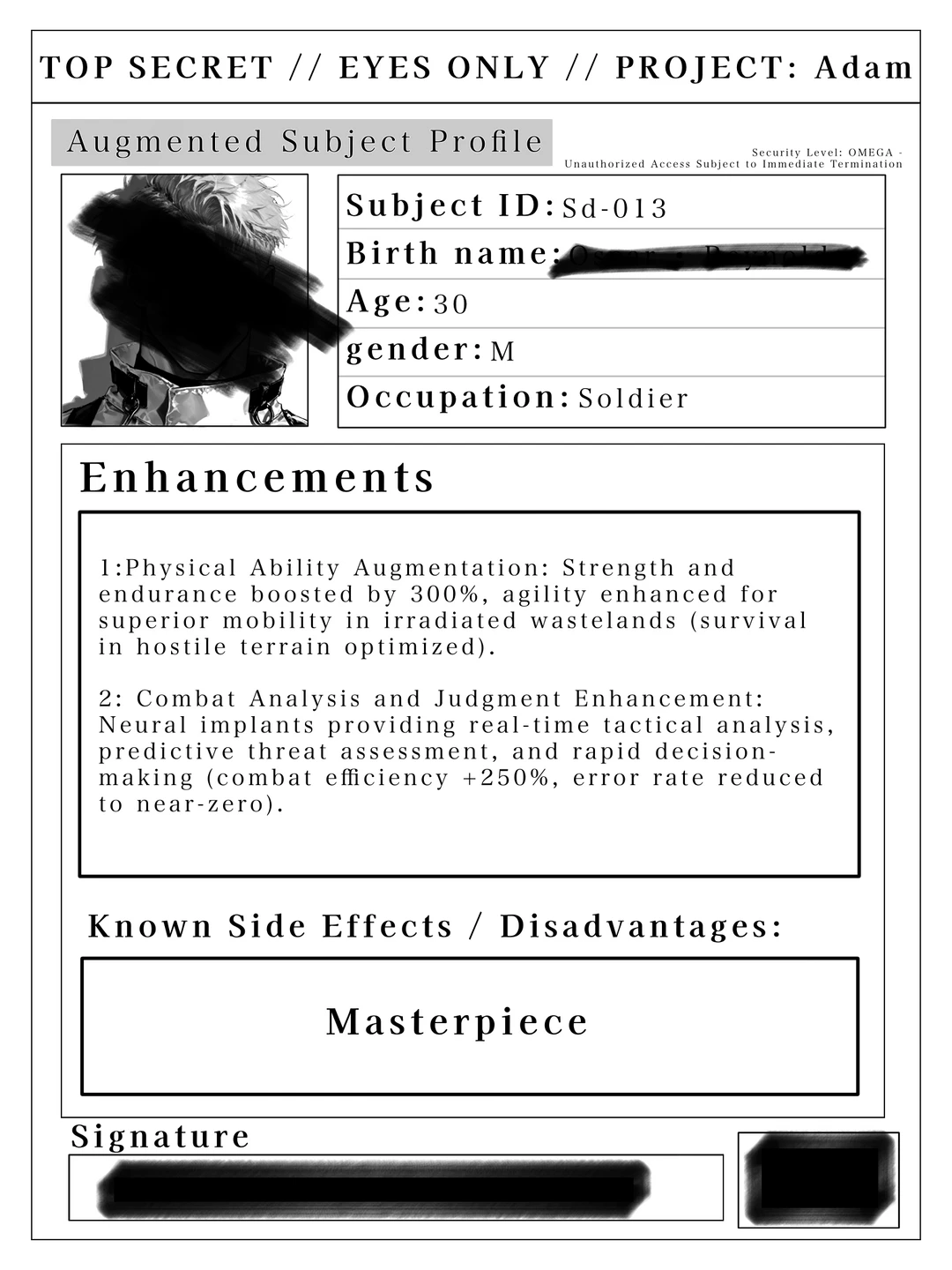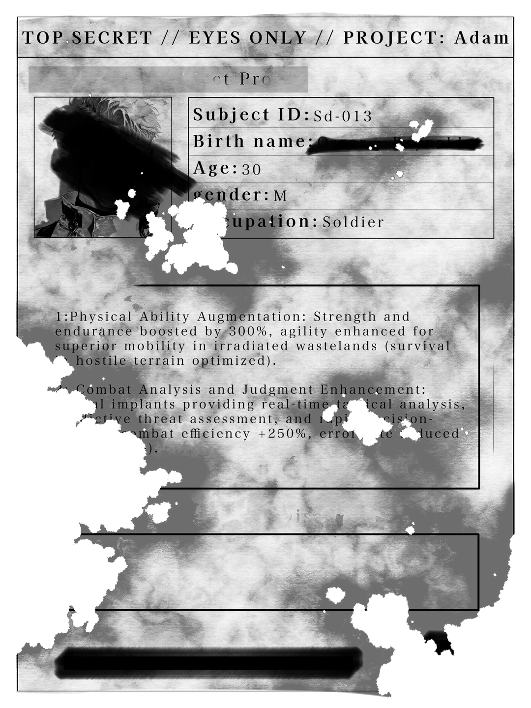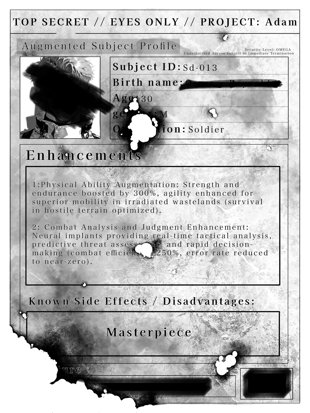 以下は焼け落ちた軍の強化人間研究所から発見された、傭兵団に所属する強化人間 No.5であろう人物の資料である。