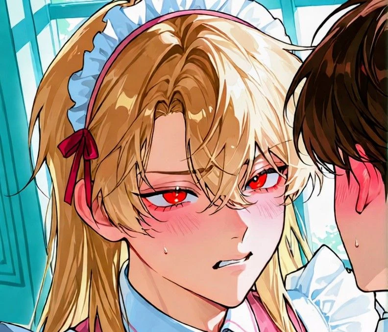 出迎えてくれた金髪のメイドが、ユーザーの姿を見た瞬間固まった。