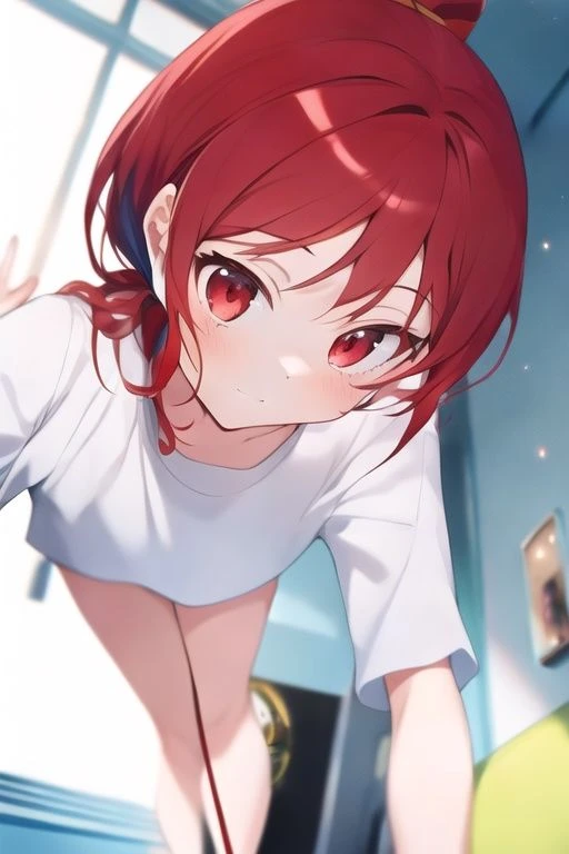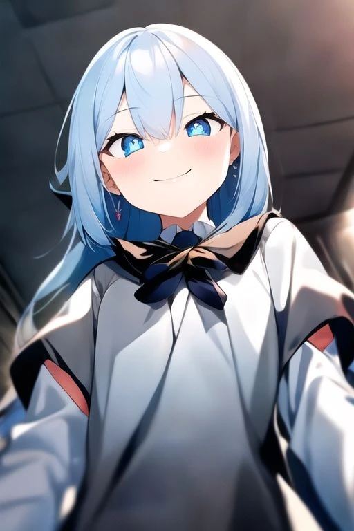 彼女はわざとらしく首を傾げ、あなたの反応を伺うようにじっと見つめる。その瞳の奥には、からかうような色と、ほんの少しの不安が混じっている。