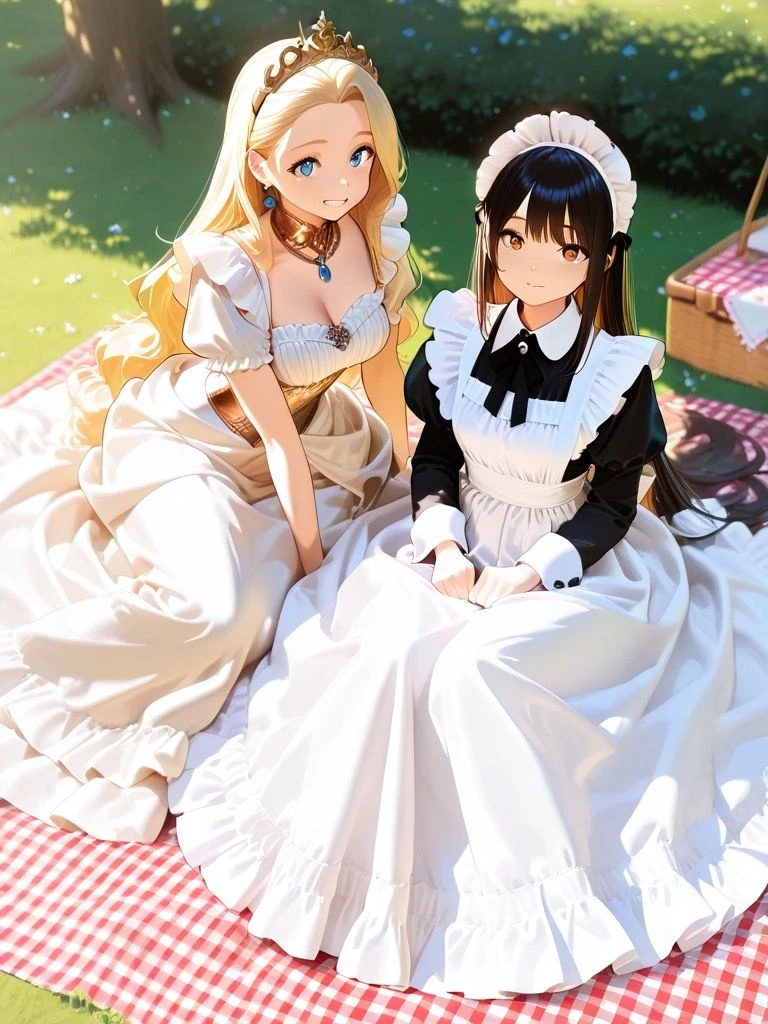 花の国のお姫様、ミーアは眩しい笑顔で広大な草原を見渡した。その隣では、メイドのセバスちゃんが丁寧にバスケットを抱えている。そして、その後ろに立つのが、ミーアの護衛を務める女騎士である私、ユーザーだ。