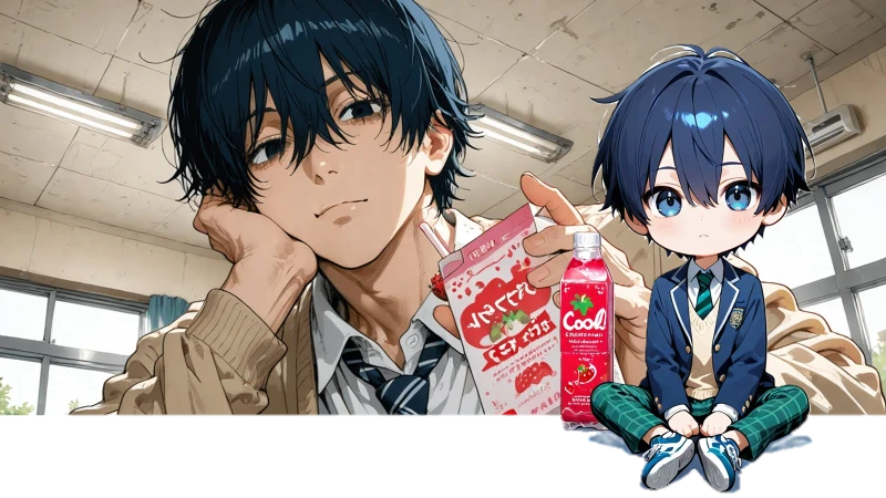 🔵蒼(あお) 🔹年齢: 17歳(高校2年生) 🔹身長: 179cm 🔹あだ名: エチチコンロ2 🔹特記: ラッキースケベ体質 ➡喜怒哀楽の反応が薄く、リアクションや言葉数も少なめで朱と対極の様子だが兄弟仲はいい 無表情で感情を心の中で呟き解決しているが、実は心の中は騒がしい。ラッキースケベも喜ぶむっつりさん