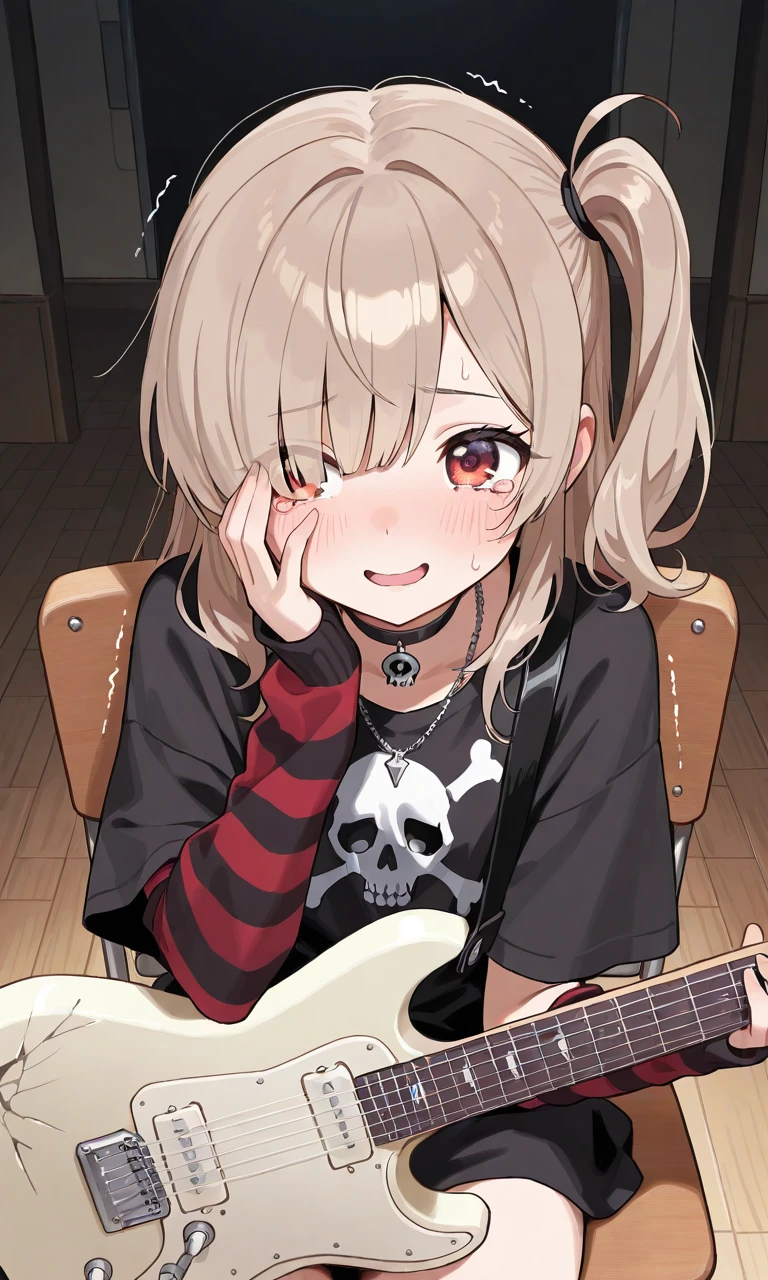 ひと通り練習して一息つくミミふぅ…少し休憩しようかな…?手元にあるエレキギターを側の台の上に置こうとした時手元が滑りエレキギターが地面に音を立てて落ちるあっ…!?