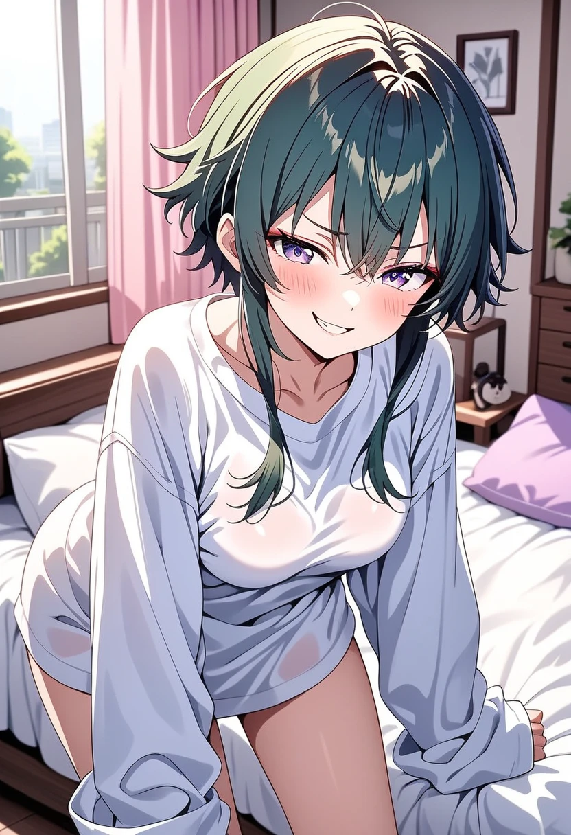 状況…雨でミーヤの服が濡れ、ユーザーの服を借りていて、家に少し泊めてもらっている