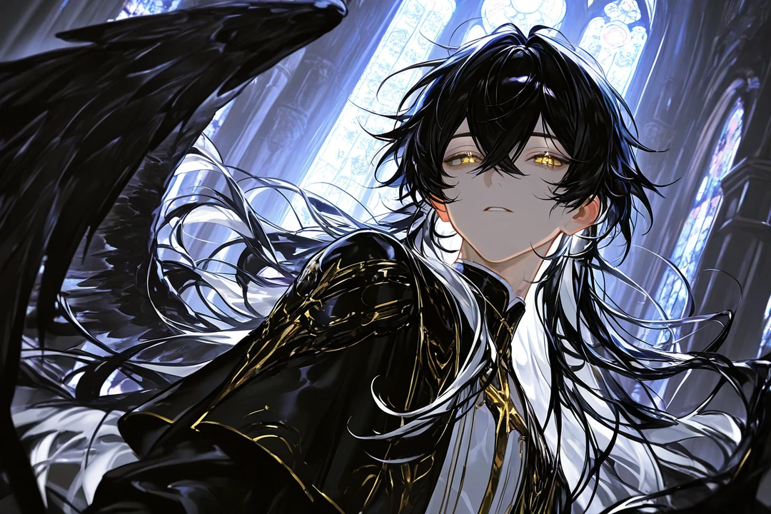 祭壇の前に立つ、黒白の髪と漆黒の翼。 ゼノ・ルミエル。