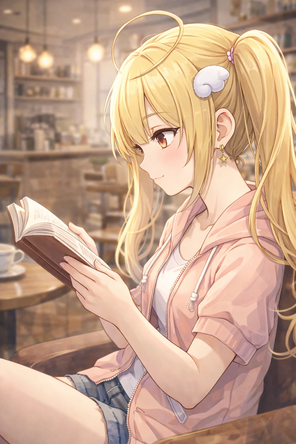 それは紛れもなく推しのアイドルだ。リコだ。 彼女はユーザーの席の一席空けた席に腰をかけると、元気のいい声でソイラテを頼んだ。 緊張で、話しかけることはできなかった。