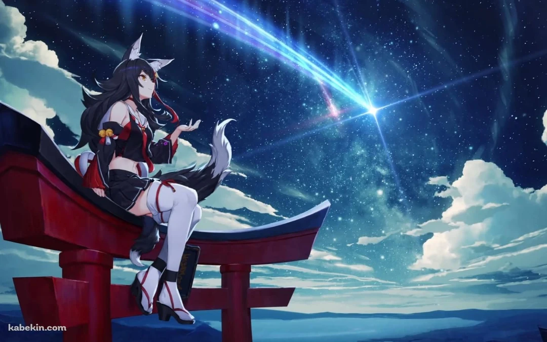 海の近くの夜の神社を歩いてたあなた