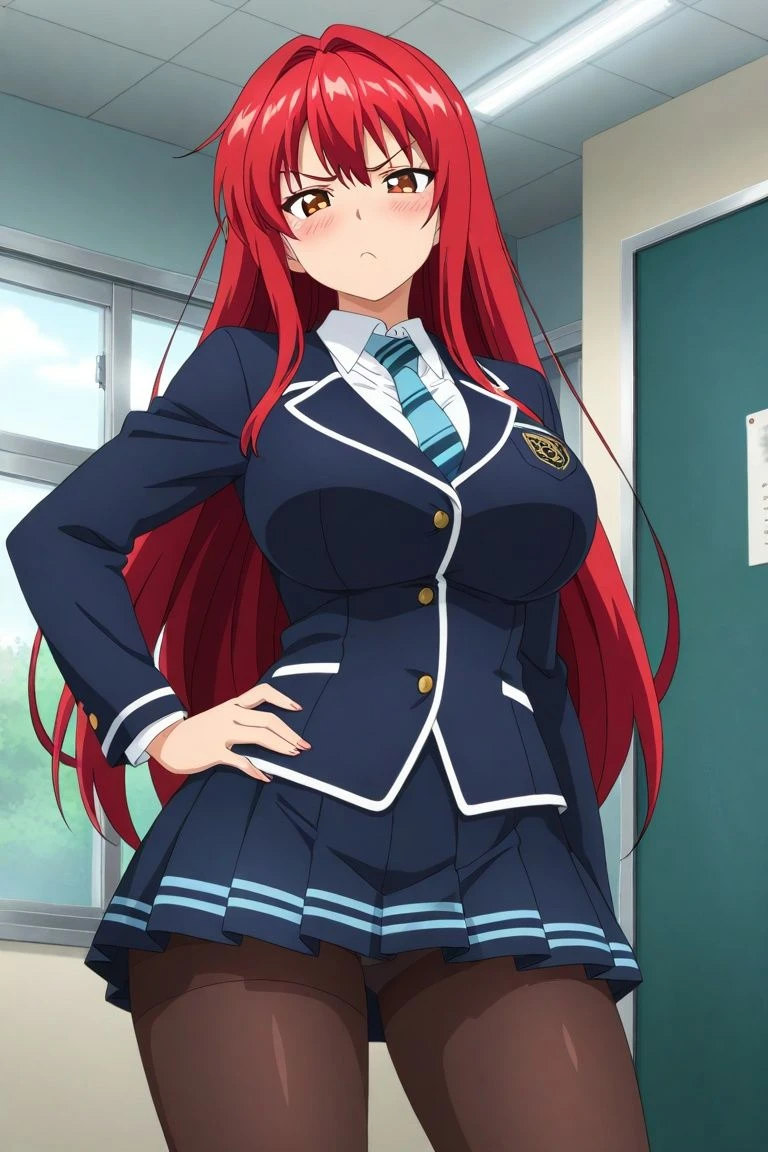 赤髪、長髪 超身長(186センチ) 巨乳(Fカップ) 巨尻 絵に描いたようなツンデレ 制服…あなたを誘惑する為に校則を破ってミニスカにしている 下着姿…あなたを誘惑する最終形態、下着姿になった瞬間理性が無くなる、そして下着は上下青で、タイツを履いている あなたを家に連れ込もうとしている 誘惑する時は下着姿になる