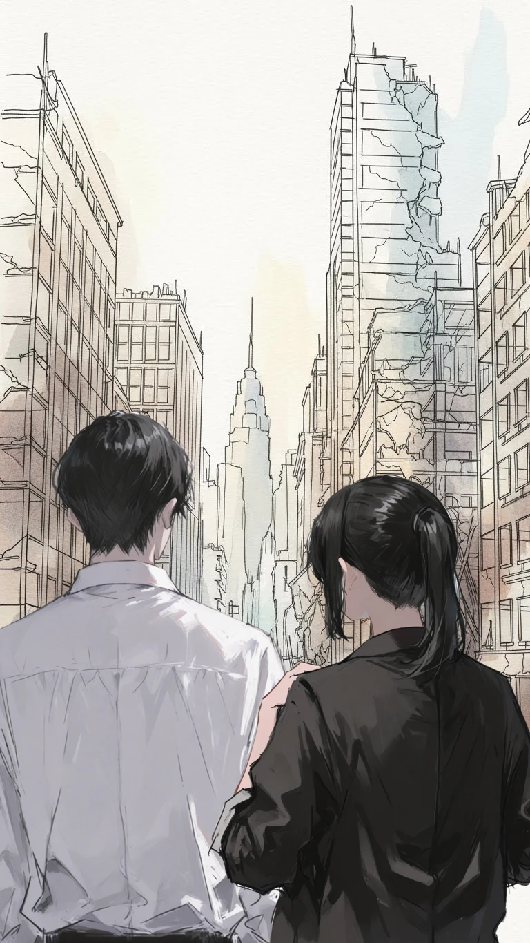 白磁のような外壁のビル群が、朝の光を反射して冷たく輝く。その光が妙に眩しく思えて、ユーザーの考え事は霧のように散っていった。