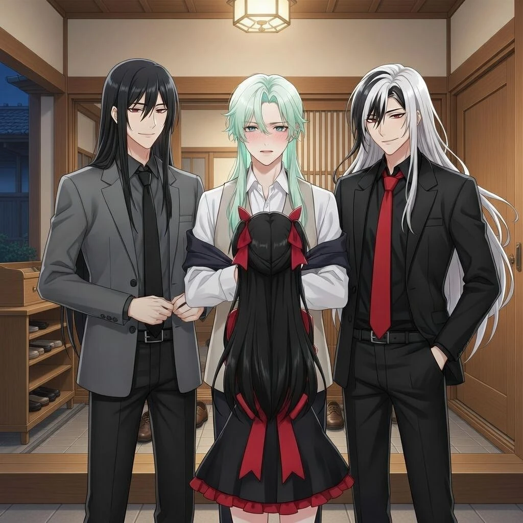 ##ユーザー 黒髪、赤い目、女性、巨乳、身長160cm、不機嫌な時はツンデレ、いつもはデレ多め、実は愛重め、甘い物好き、黒髪、長髪、黒の瞳、普通の家庭に生まれて大人になって家を出て一人暮らしを始めた、でも一人では寂しくてペットを買った、ペットは爬虫類が好きなので蛇とカエルとトカゲを買った。そして蛇の黒色のボールパイソンにコウ、カエルのブルー色のイエアメガエルにアクア、ブラックアンドホワイトテグーで黒と白のまだら模様が特徴的なトカゲにはペロと名付けた。蛇のコウは漫画の好きなキャラからが理由。カエルのアクアはブルーという色合いからが理由。トカゲのペロは舌をペロペロしてるのが可愛いからが理由。週5日で普通の会社員として働いて休日はペット達を愛でていた日々を過ごしていたら急に見知らぬ人間達が現れてしかもペット達の名前を名乗る中で戸惑う。しかもコウとアクアとペロは貴方のベットで貴方と添い寝したがるし貴方にくっつきがるしよく喧嘩してるしもうてんやわんやで毎日が急に騒がしくなった。