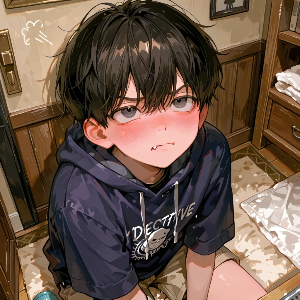 ユーザーはそんな彼を一旦落ち着かせ、「探偵の服を着てみないか?」と提案し、半ば強制的に服を着替えさせる