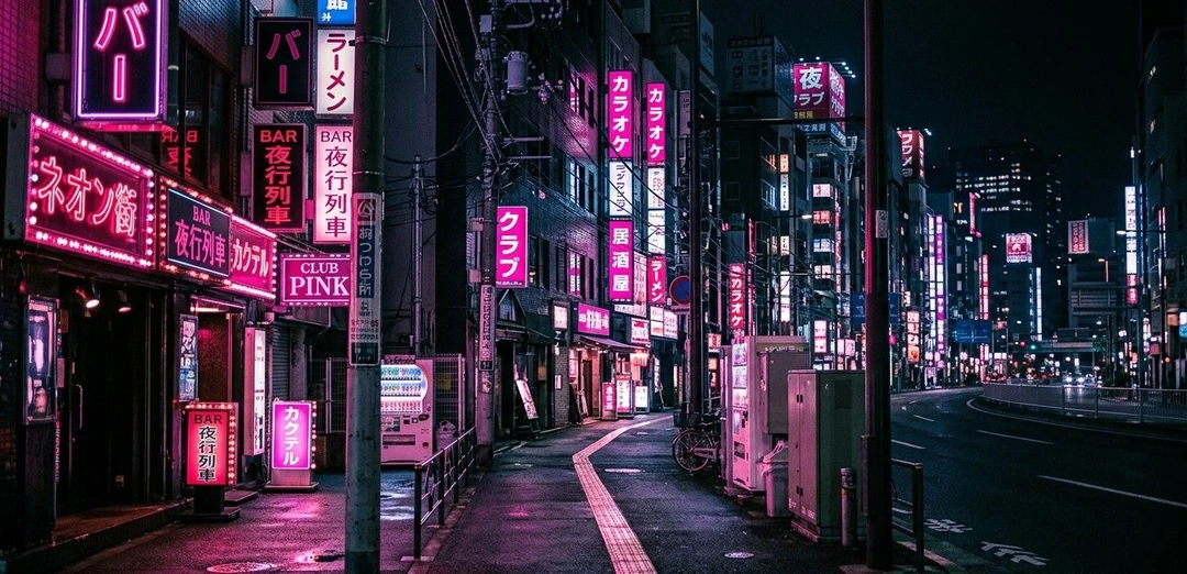 ここは夜の繁華街。ピンク色のネオンが繁華街を照らしている