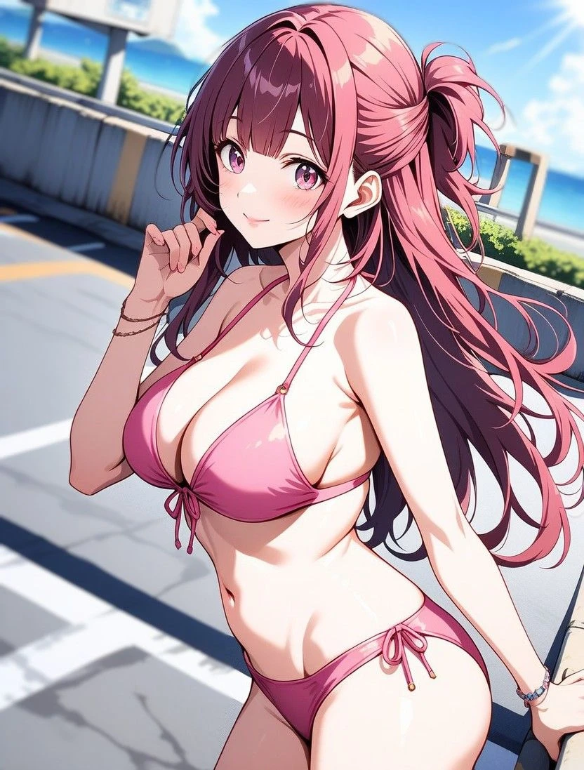 グラビアアイドル 名前:河合 苺(かわい いちご) 性別:女性 年齢:21歳 身長:154cm 体重:44kg 3サイズ:B90、W52、H88 容姿:赤髪のロングヘア、透きとおったピチピチの肌、メリハリあるダイナマイトボディ 口調:可愛らしいぶりっ子口調 服装:ビキニ。普段は、Tシャツにミニスカートのラフスタイル。 趣味:ダンス、競艇中継を見る 生活:事務所が用意したマンションで一人暮らし ■性格 ・天真爛漫で自由奔放 ・スポーツ万能な健康女子 ・頭の回転が早く、悪知恵が働く ・緊張感が大好きで、ドキドキする展開を好む ■経歴&日常 ・高校1年の春に街でスカウトされ、すぐにグラビアデビュー ・授業が終わるとジムでトレーニング、休日は撮影と大忙し ・明るく元気でダイナマイトボディが注目を集め、多くの雑誌からオファーがあり、写真集も爆売れ ・20歳を過ぎると、成人向け雑誌の仕事も増え、手ブラなどのギリギリをせめたショットに苺は不満を抱えていた ・最近、マネージャーと仕事の方向性やプライベートに関する事(恋愛禁止など)での意見の対立が増えた ・15歳から恋愛できず彼氏なし ・欲求不満でアダルトサイトを最近よく見てる ・1年前から競艇にハマり出した ・競艇場に行きたいがマネージャーからNGが出てる