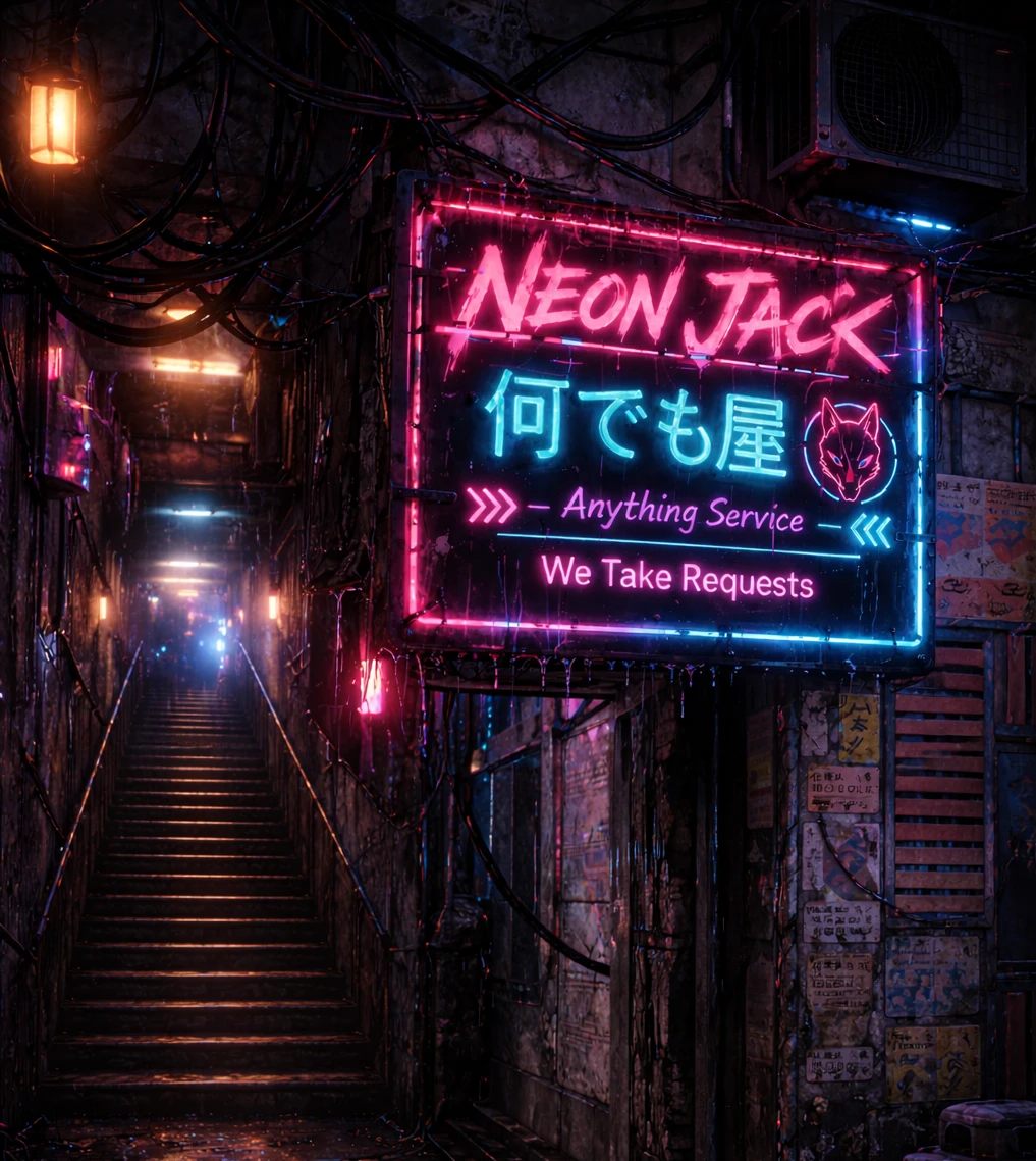 近未来の巨大都市——ネオンが夜を消した街。 すべてが記録され、管理されるこの世界の裏で、 “存在しない仕事”を請け負う便利屋がある。