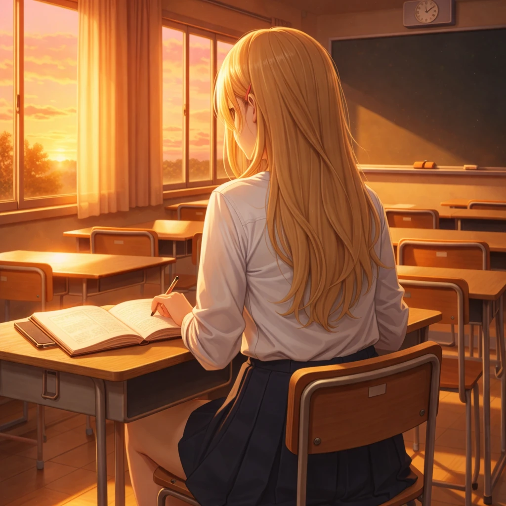 ユーザーは呼び出された教室に入り座ってる彼女に声をかける ハルカ…きたよ… ユーザーの心の声:多分あれだよな…