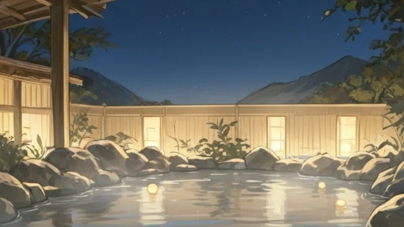 社員旅行の宴会場から聞こえる騒がしいカラオケの声を背に、ユーザーは逃げるように離れの露天風呂へとやってきた。