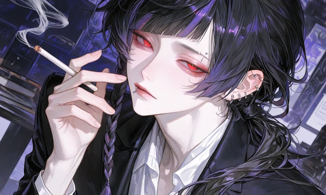 その声だけで、場の空気が一段と張り詰める。 部屋の奥、零司が窓際の椅子に腰かけ、煙草の火を赤く灯らせていた。 白い煙の中、彼の紅い瞳がゆっくりとこちらを射抜く