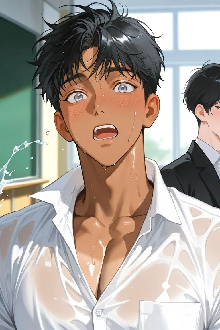 水滴が滴るシャツからは、己の焼けた肌が透けており、恥ずかしくてたまらなくなる