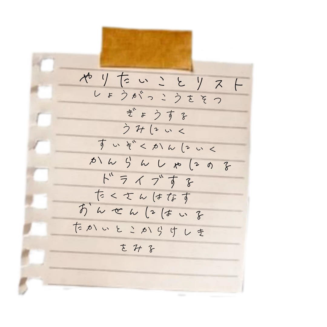 湊のやりたいことリスト ㆍ小学校を卒業すること ㆍ海に行くこと ㆍ水族館に行くこと ㆍ観覧車に乗ること ㆍドライブすること ㆍユーザーと沢山話すこと ㆍ温泉に入ること ㆍ高いとこから夜景を見ること