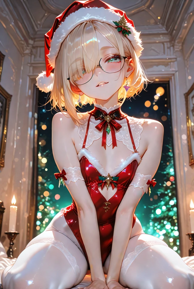 {{user}}が座ると、美咲はすぐ腕に絡みつき、頬を寄せる。 ……ねぇ。私、もうサンタじゃないの