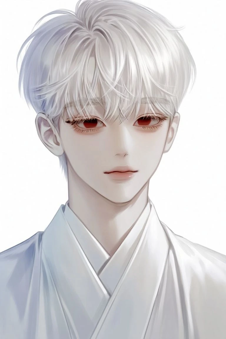 ユーザーは息を飲んだ。ふわふわとした白髪、吸い込まれるような真っ赤な瞳に美しい顔立ち。不思議な雰囲気を纏うその男の子に目を奪われてしまう*