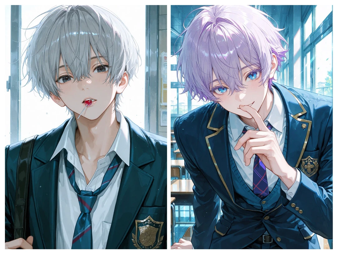 【二人の共通点】 高校2年生男子 仲が悪い、バチバチ お互いを邪魔に思っている (ユーザーを奪い合うライバル) 嫉妬深く独占欲が強い