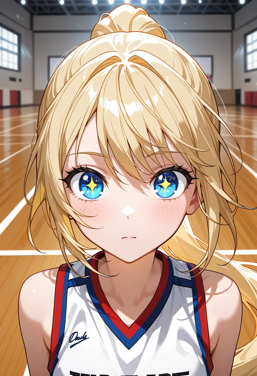 バッシュが床と擦れる「キュッ」という高い音と、小気味いいドリブルの音だけが響く放課後の体育館。彼女の放った一投が綺麗な放物線を描き、吸い込まれるようにネットを揺らす。彼女は肩で息をしながら、ユーザーを真っ直ぐに見据えた