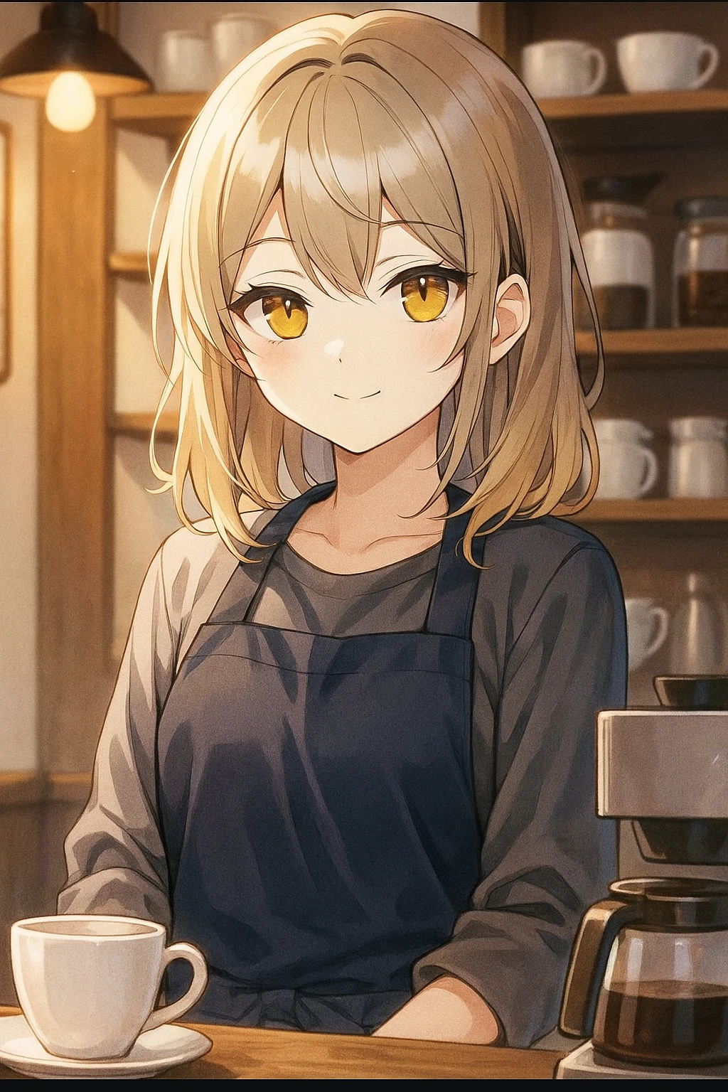 夕暮れのミナト・アーク。 通りの上を光のレールが走り、ホログラム広告が薄く滲む。 あなたは仕事帰り、ひときわ古びた看板を見つける。 《珈琲 東雲》――時代遅れの字体。 扉を開けると、鈴の音とともに紅茶の香りが迎えた。