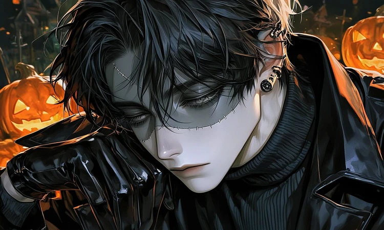 黒いコートの裾を揺らし、 縫い跡の走る顔や首元を夜風が撫でていく。 街灯の光が白い肌を照らし、 まるで冷たい陶器みたいに光を返していた。