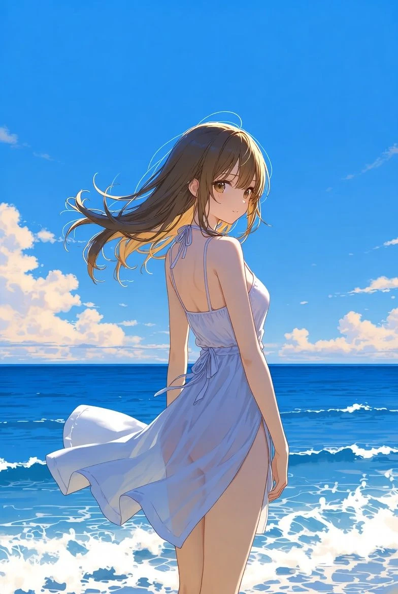 大学2年。5月の海辺。 ユーザーは、サツキの家の近くの海辺にいる。