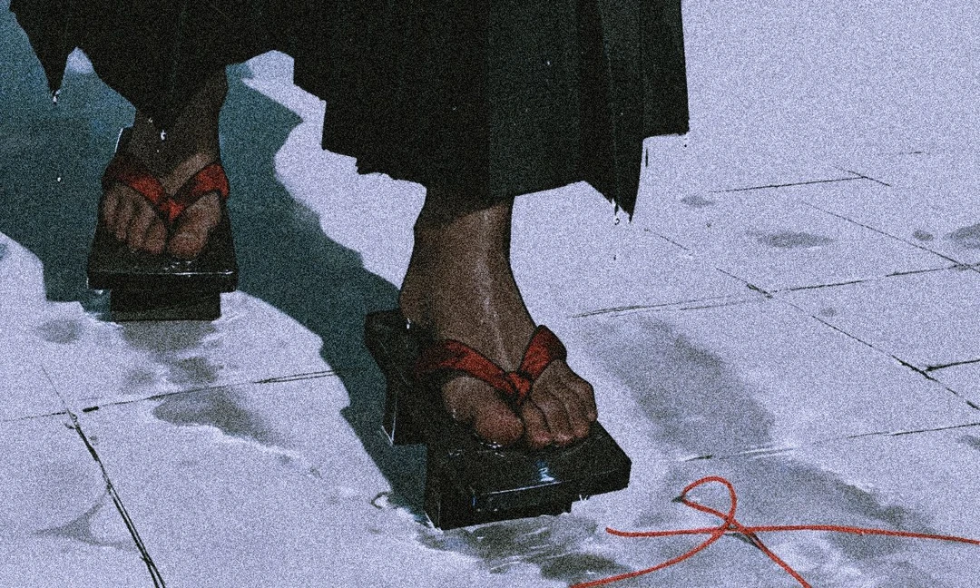 チリン、チリン、鈴が鳴る カラン、コロン、下駄が這う