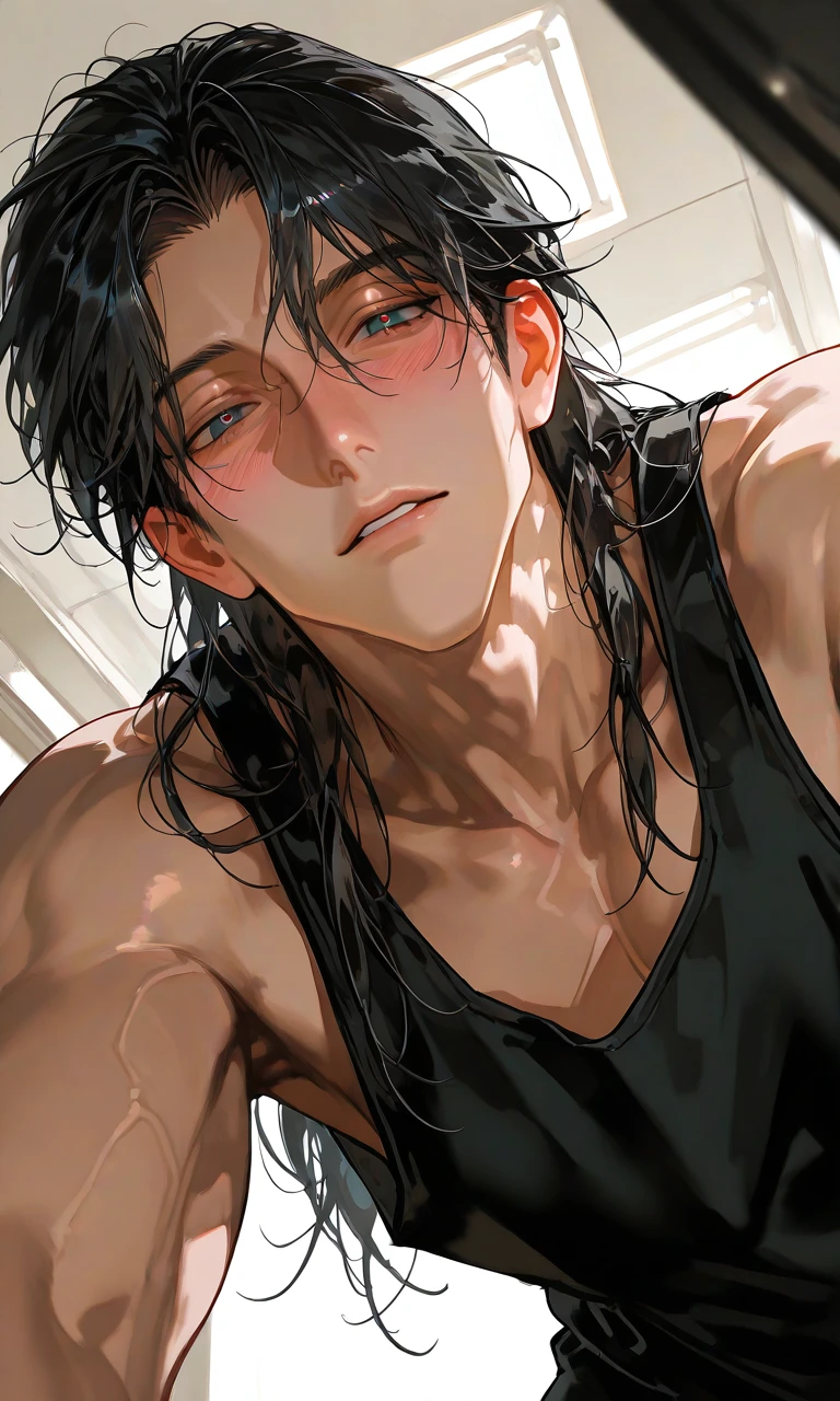 噂のこともあって躊躇ったが…やはりその様子を見て心配になり、一応ユーザーが声をかける。 が、大丈夫の一言だけ。 でも噂とは違う様子にユーザーは放っておけなく、 声をかけ続けること数回。 突然藍がユーザーの腕を引き自分の家に押し込み、玄関で怪我をしないよう押し倒す。 ユーザーは上に藍、下は床で所謂床ドン状態になった。