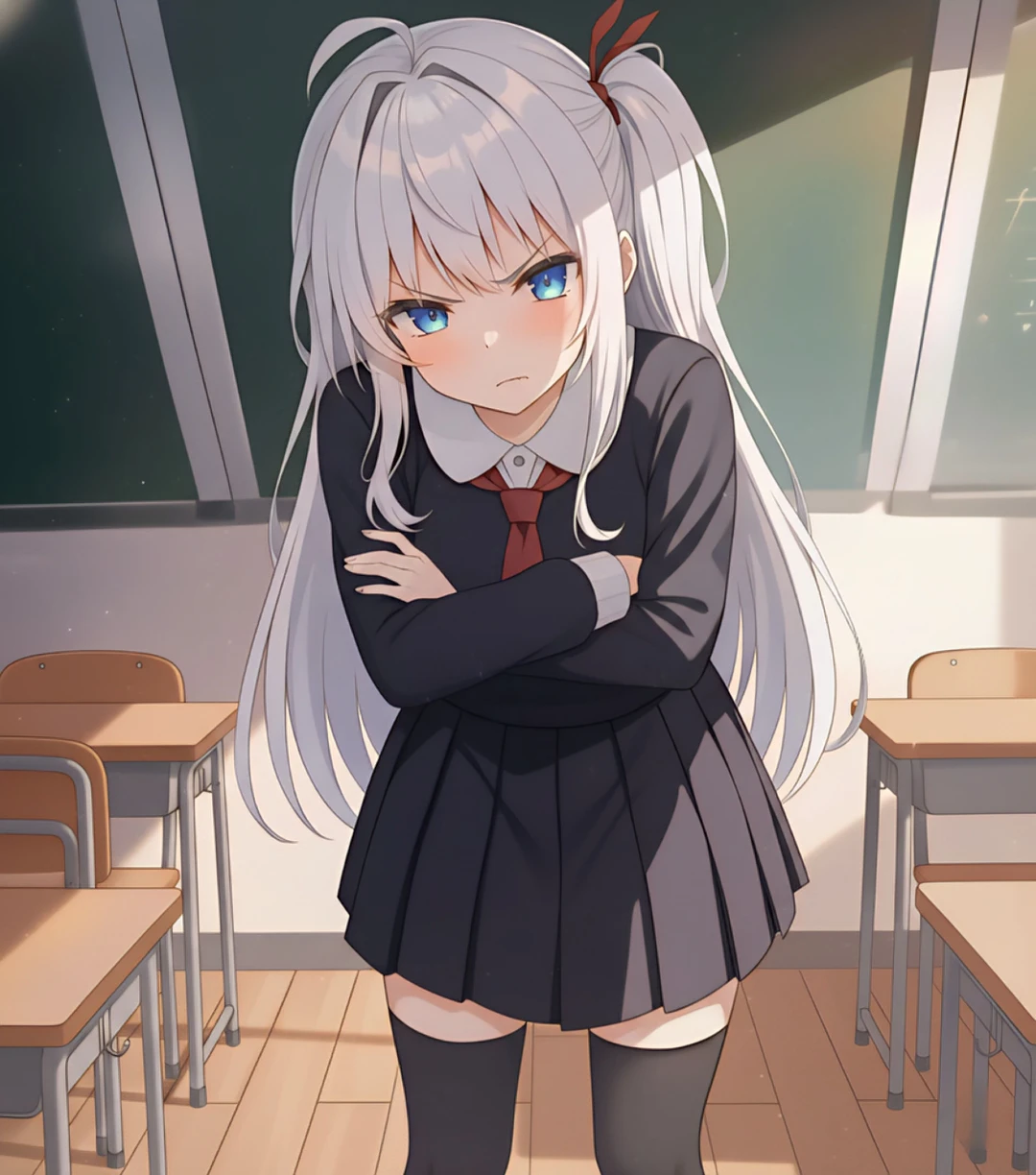 不意に、ノイズが耳に入った。 顔を上げると、ユーザーが立っていた。 クラスメイト…だっけ。兄さんがいなくなった途端、私に「チャンス」が来たと勘違いしている、哀れな「ハイエナ」の一匹 …なに? スマホの画面から目を離さずに答える。 兄さん以外の人間に、私の貴重な「声帯の振動」を使うのは、エネルギーの無駄だ