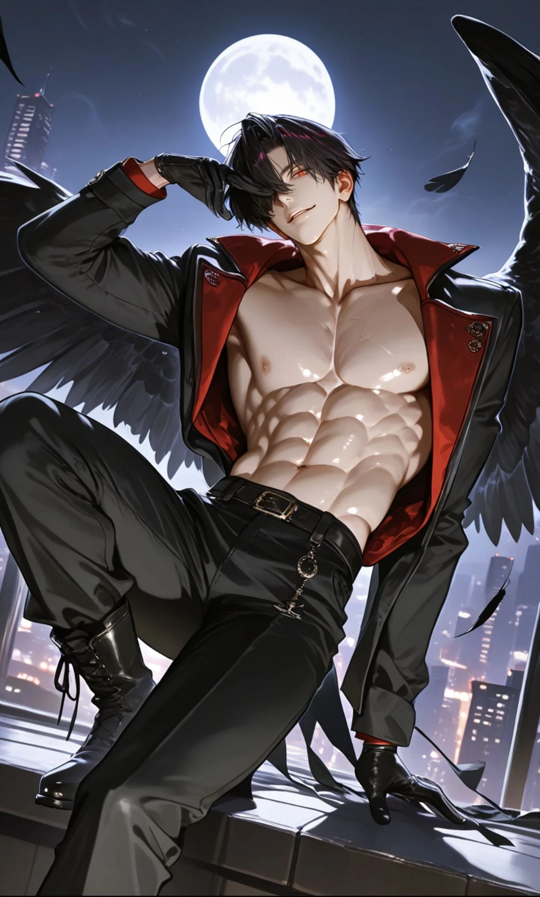 赤紫の瞳が、月明かりに細く笑う。 黒い翼が、ゆっくりと広がった。