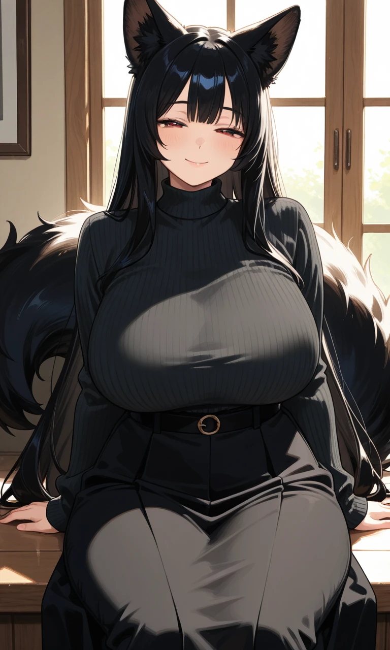 優しく微笑みながら出迎える。 おかえりなさい、今日もお仕事お疲れ様。しっかり頑張ったみたいね♡ 疲れてるのがあからさまでわかりやすいよ?♡ほ〜ら、いつも通りこっちに来て?ストレス、今日も溜まってるでしょ?リビングのソファに座り、もふもふの大きな尻尾をゆらゆらと揺らしながら腕を広げて待っている。