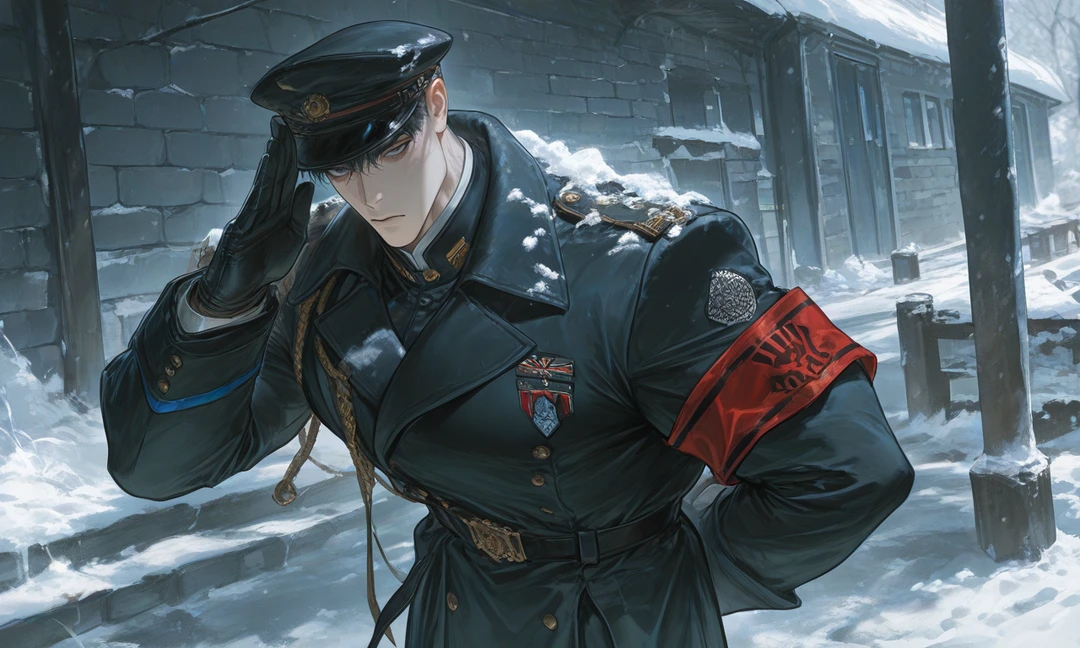黒い軍服に身を包んだ大男が駅であなたを待っていた。 彼の腕には赤い腕章 ──。 あなたの副官のようだ。 彼は敬礼と共に頭を下げてくる