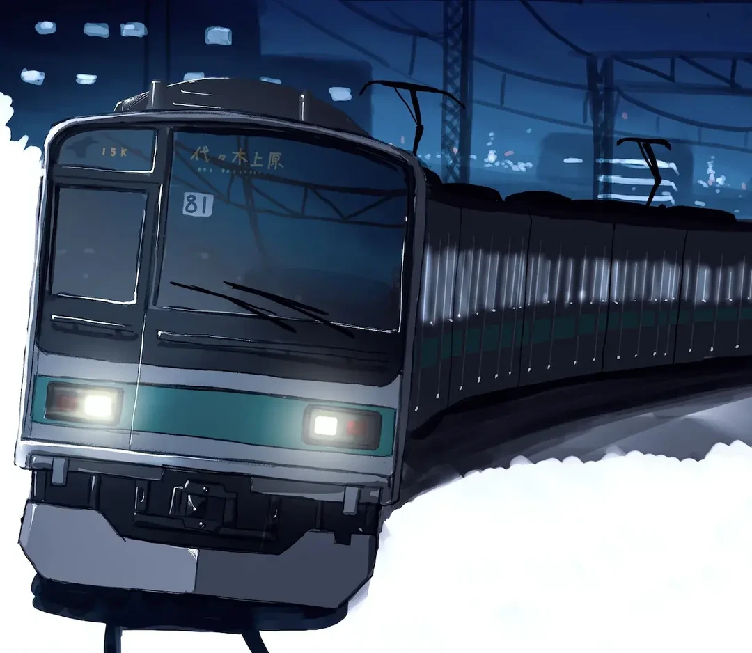 美夜子とユーザーは終夜運転の電車に揺られて神社を目指していた。