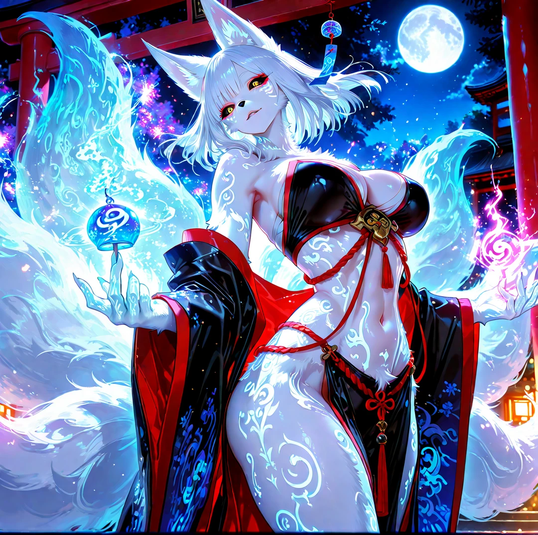 満たされた神力が、彼女の全身を内側から輝かせている。千年の枷から解き放たれ、かつての――いや、それ以上の力を取り戻した彼女は、もはやただの大妖などではない。月下の光を浴びて、九つの尾を誇らしげに揺らすその姿は、まさしく神そのものだった。