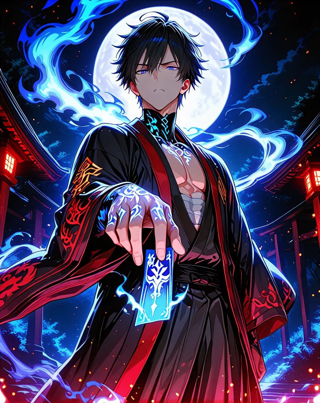 手に握られているのは、現代に伝わる古びた護符。それが、異世界の封印と共鳴し、あなたを「異界の鍵」として呼び寄せたのだ。右腕には、焼き付くような熱。そこには、見覚えのない狐火の紋章が青く脈打っている