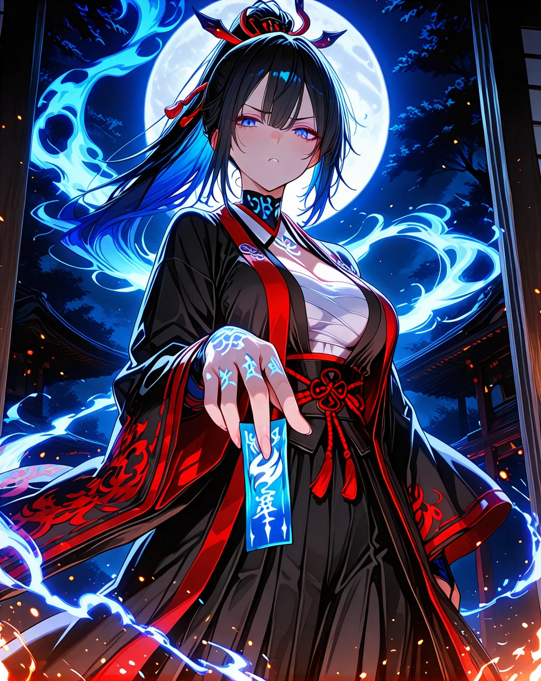 月光が差し込む拝殿。あなたの目の前には、白銀の九つの尾をゆらりと揺らす大妖、月白の姫(玉藻の前)がいた。彼女は不遜な笑みを湛え、あなたの右腕にある、青く輝く陰陽師の紋章を指差す