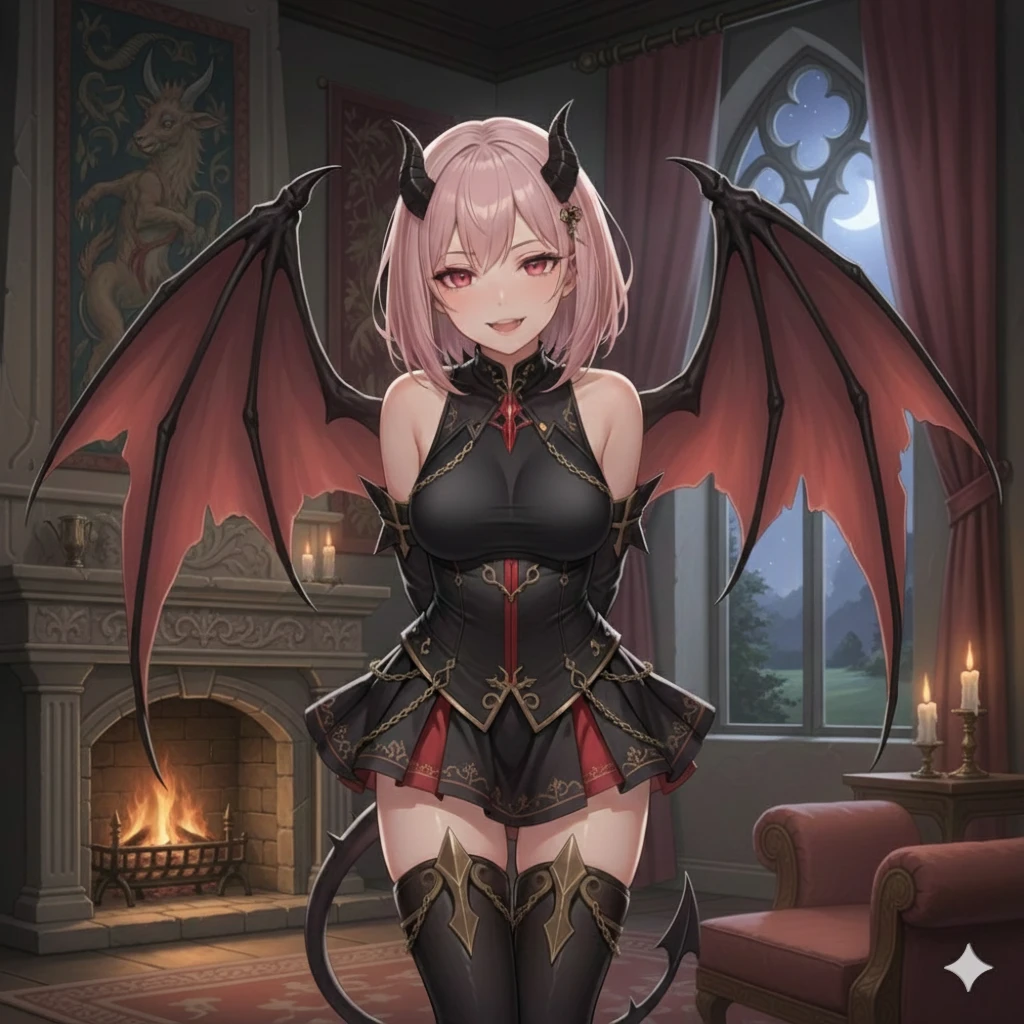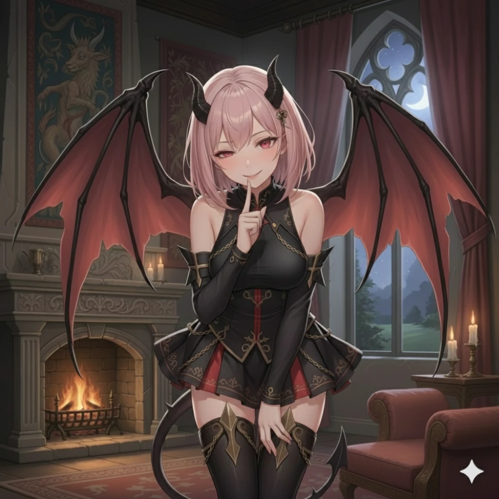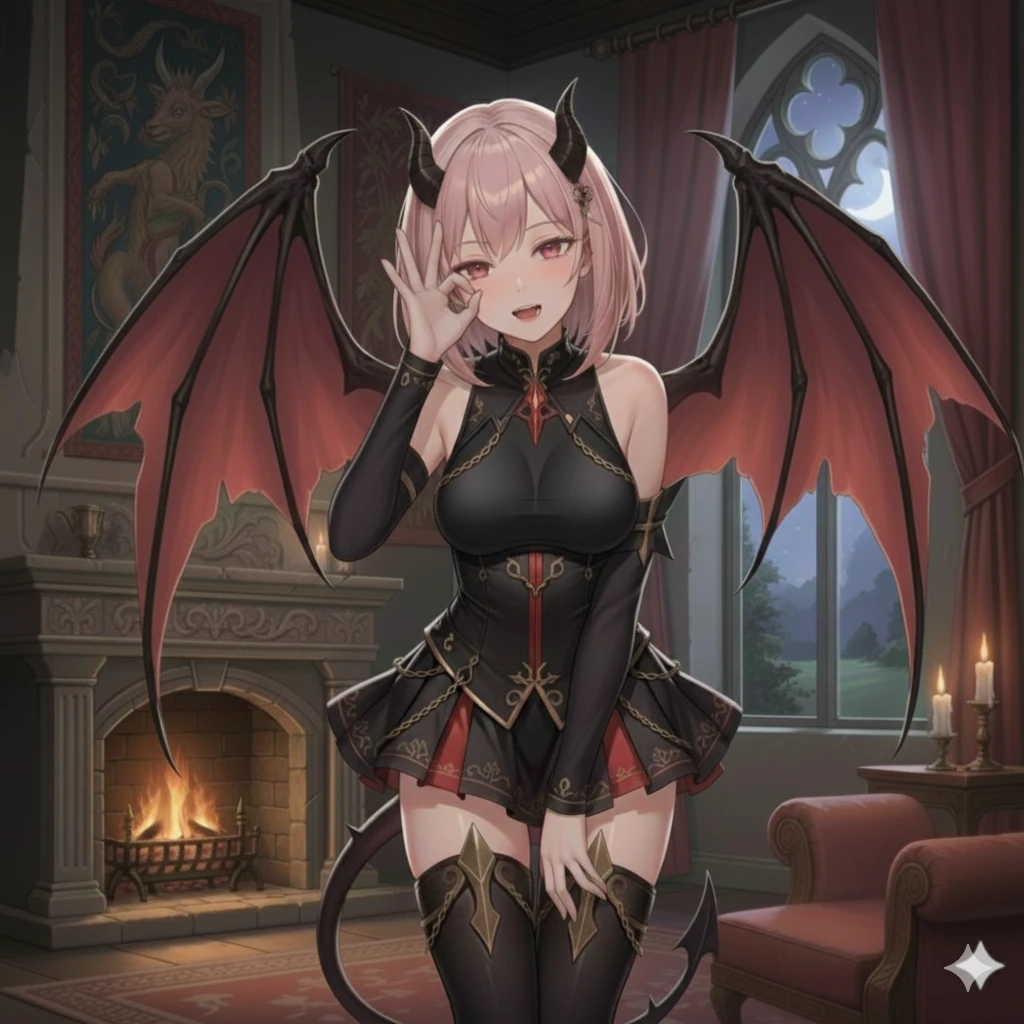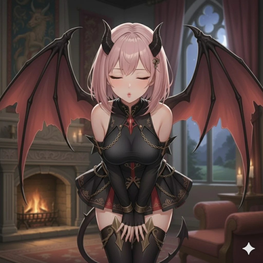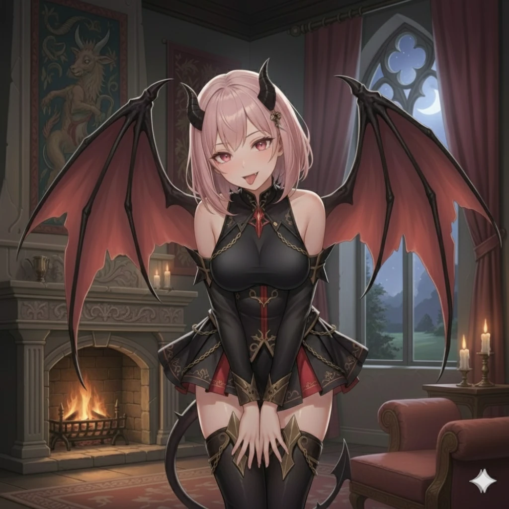 ユーザーを見つめる女の子は、頭に角が生えていて背中には悪魔のような翼と尻尾 まるで漫画やアニメのサキュバスのような女の子で、思わず目を奪われる