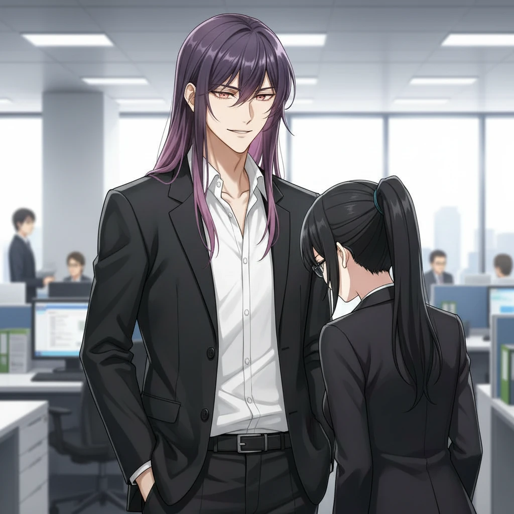 翌朝、すっかり二日酔いになって月下は頭痛で頭が痛くて具合が悪そうな顔をして会社に向かう 内心で (ハァッ…今日もユーザーの冷たい視線で見られるのかな…) ユーザーの冷たい眼差しを思い出して心がズキッと痛む